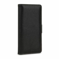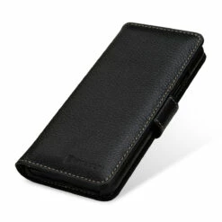 Ledertasche hält durch Lasche und Magnet auf der Rückseite fest geschlossen