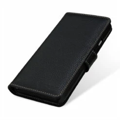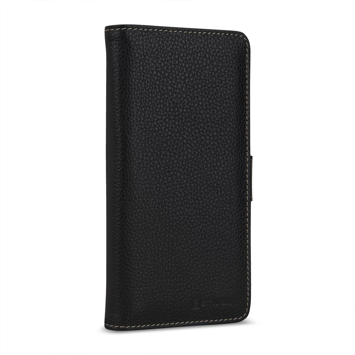 Ledertasche hält durch Magnetverschluss auf der Rückseite fest geschlossen
