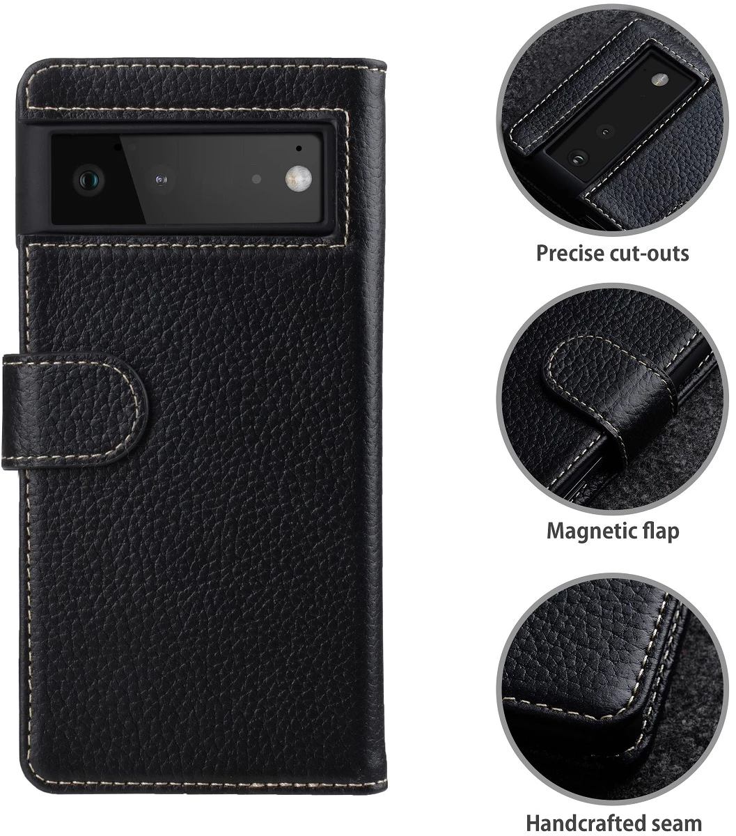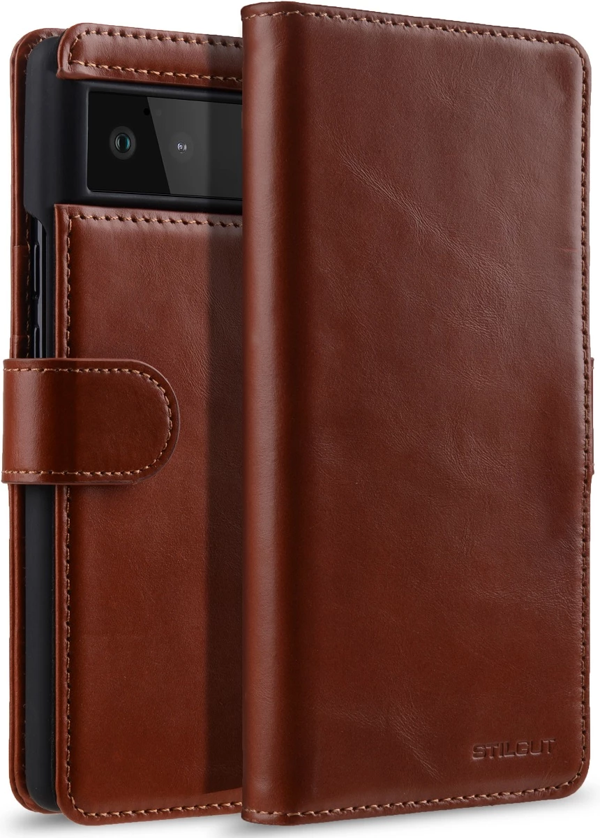 Handgemachtes Google Pixel 6 Flip Cover aus Leder mit Fächern für Karten & Geld