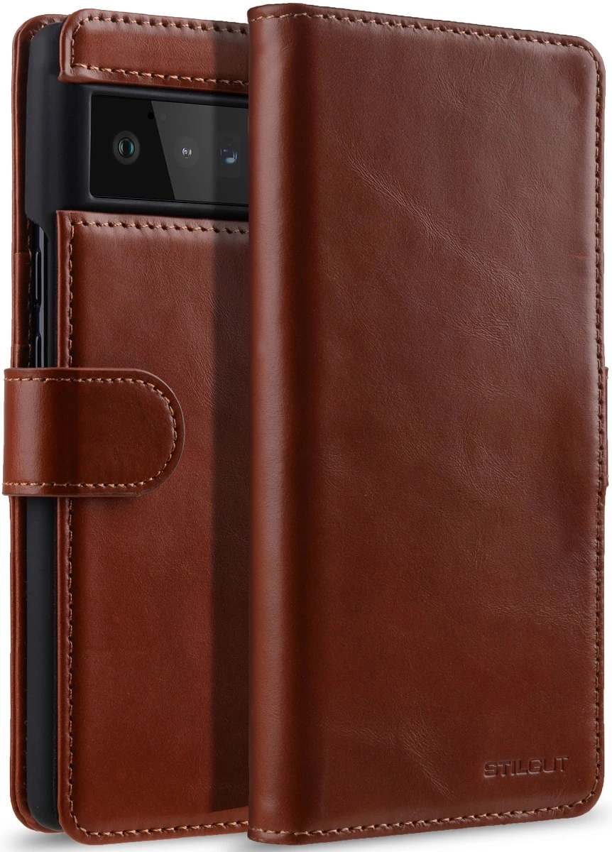 Handgemachtes Google Pixel 6 Pro Wallet Case aus Leder mit Fächern & Magnetverschluss