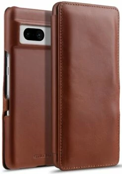 In Handarbeit hergestellte Google Pixel 7 Ledertasche Book Type mit Clip-Verschluss