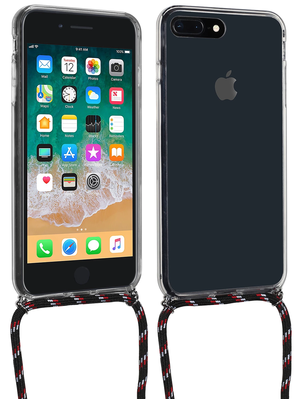 Stylische, transparente iPhone 8 Plus Handyhülle mit Band zum Umhängen