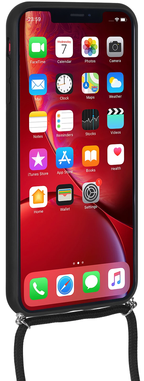 Handykette für iPhone XR mit robustem Case aus Kunststoff mit Lederrückseite
