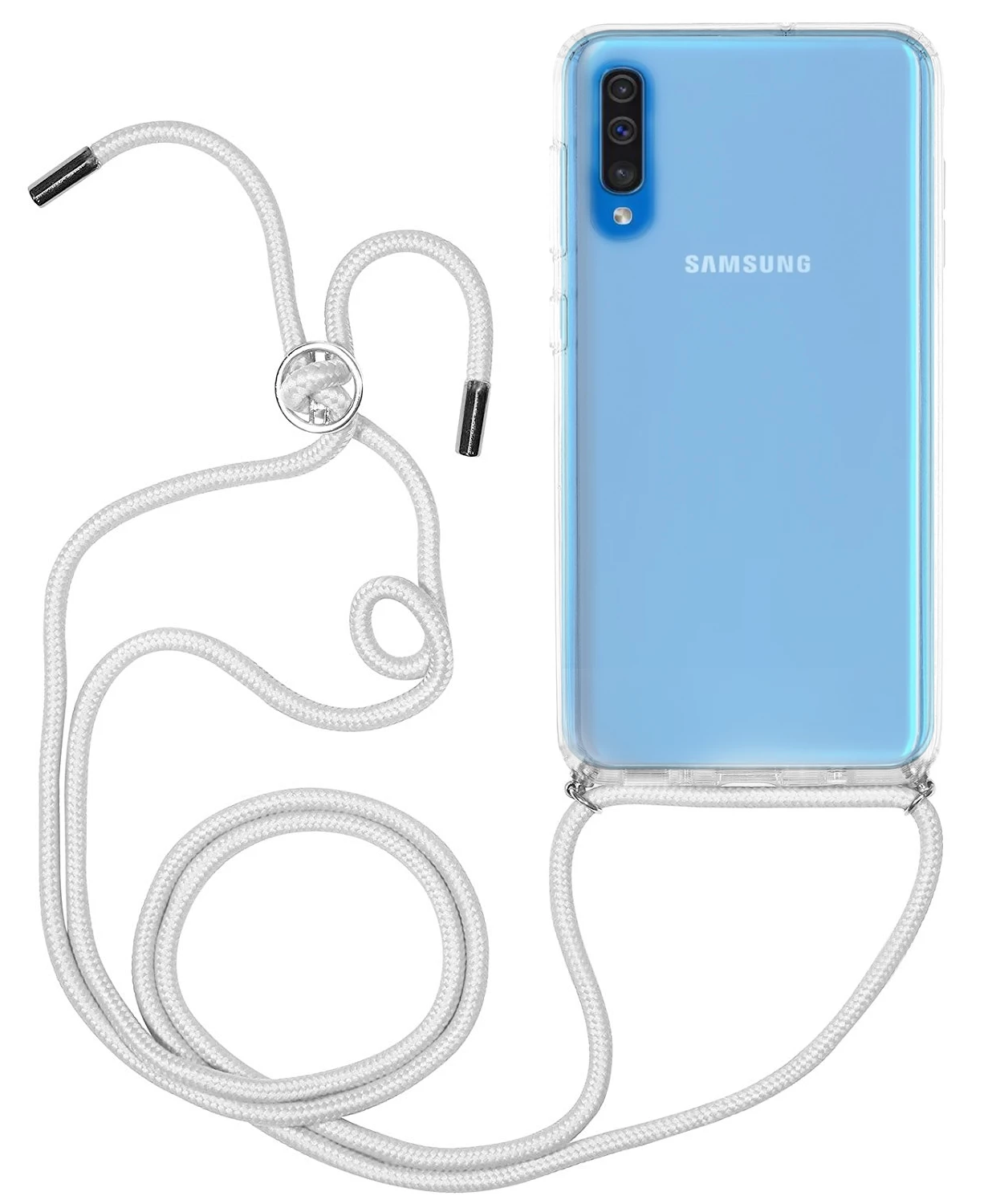 Trendige Samsung Galaxy A50 Handykette zum Umhängen mit grauem Band