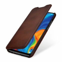 Schlanke und handgefertigte Huawei P30 lite Book Type Hülle aus hochwertigem Leder