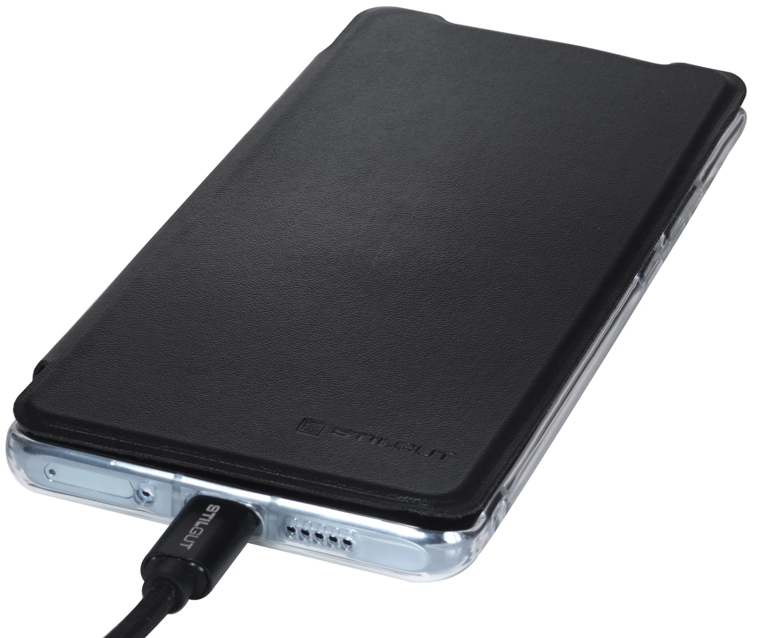Deckel aus glattem Nappaleder, Case aus transparentem Kunststoff (TPU)