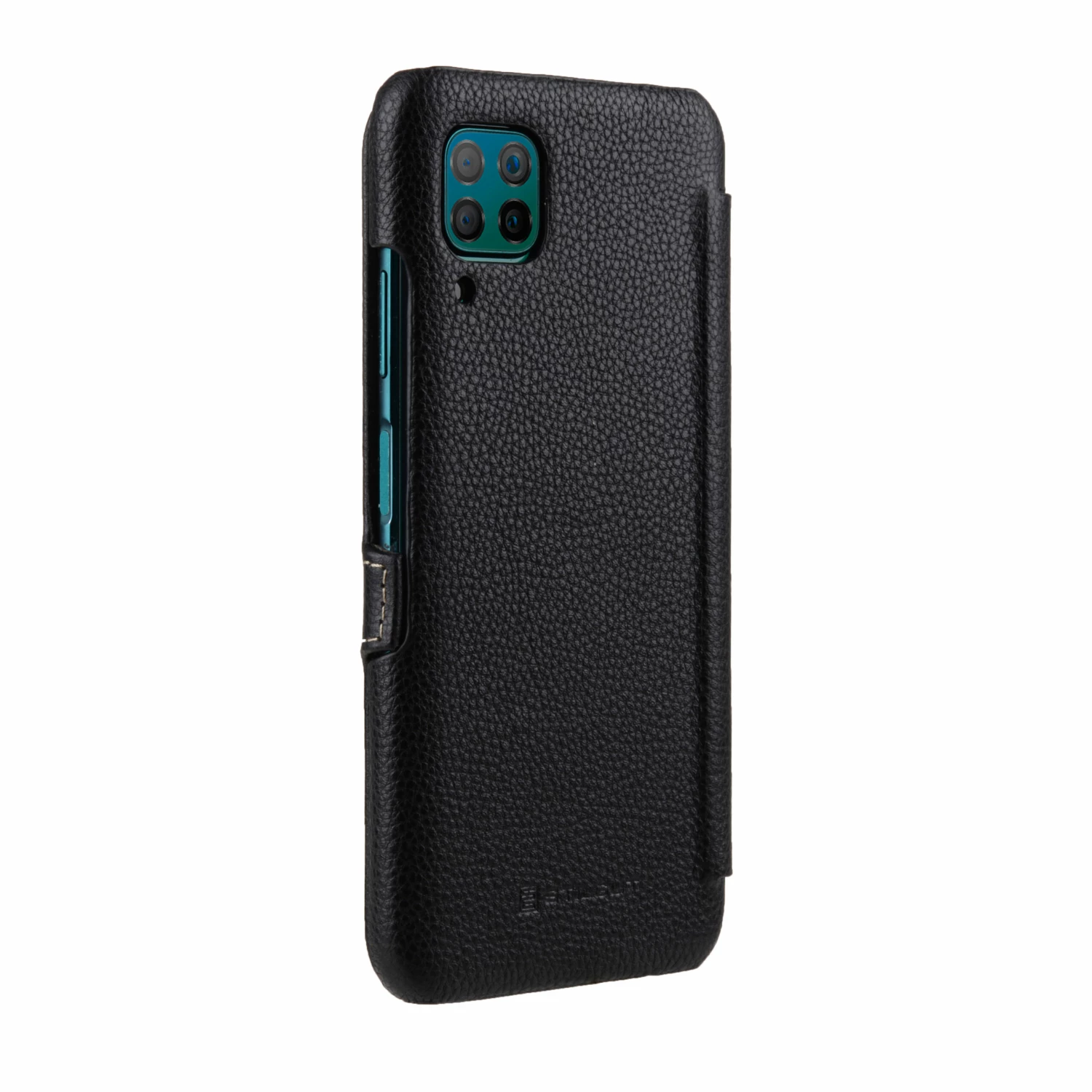 Handgefertigte Huawei P40 lite Tasche Book Type aus Leder mit Clipverschluss