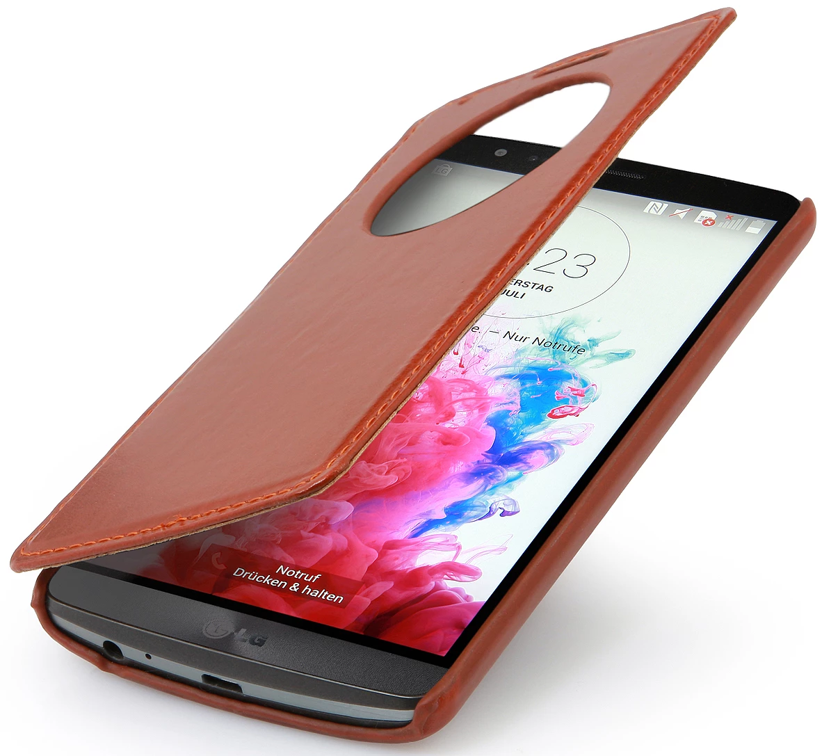 Sichtfenster auf dem vorderen Seite für das neue Feature von LG G3: das Quick-Circle, bedienbar auch mich geschlossener Tasche