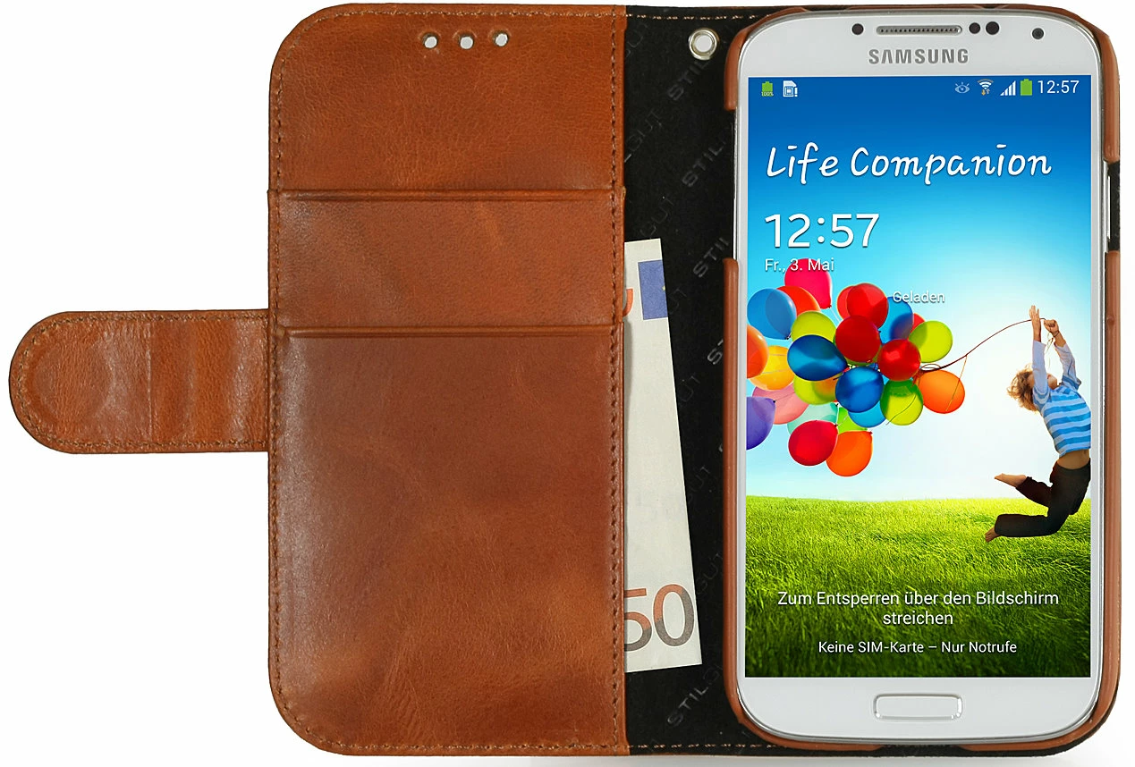 Tasche / Case für das Samsung Galaxy S4 i9500 aus echtem Leder zum Schutz und zur Verwendung als Brieftasche