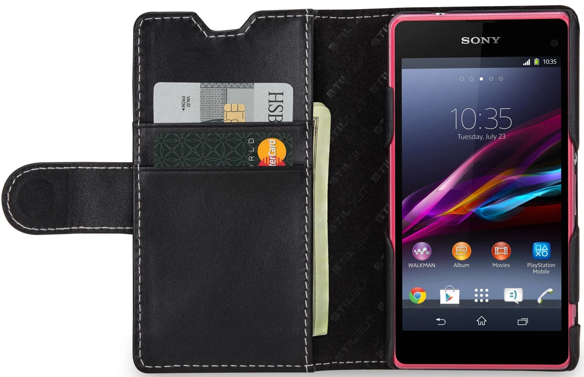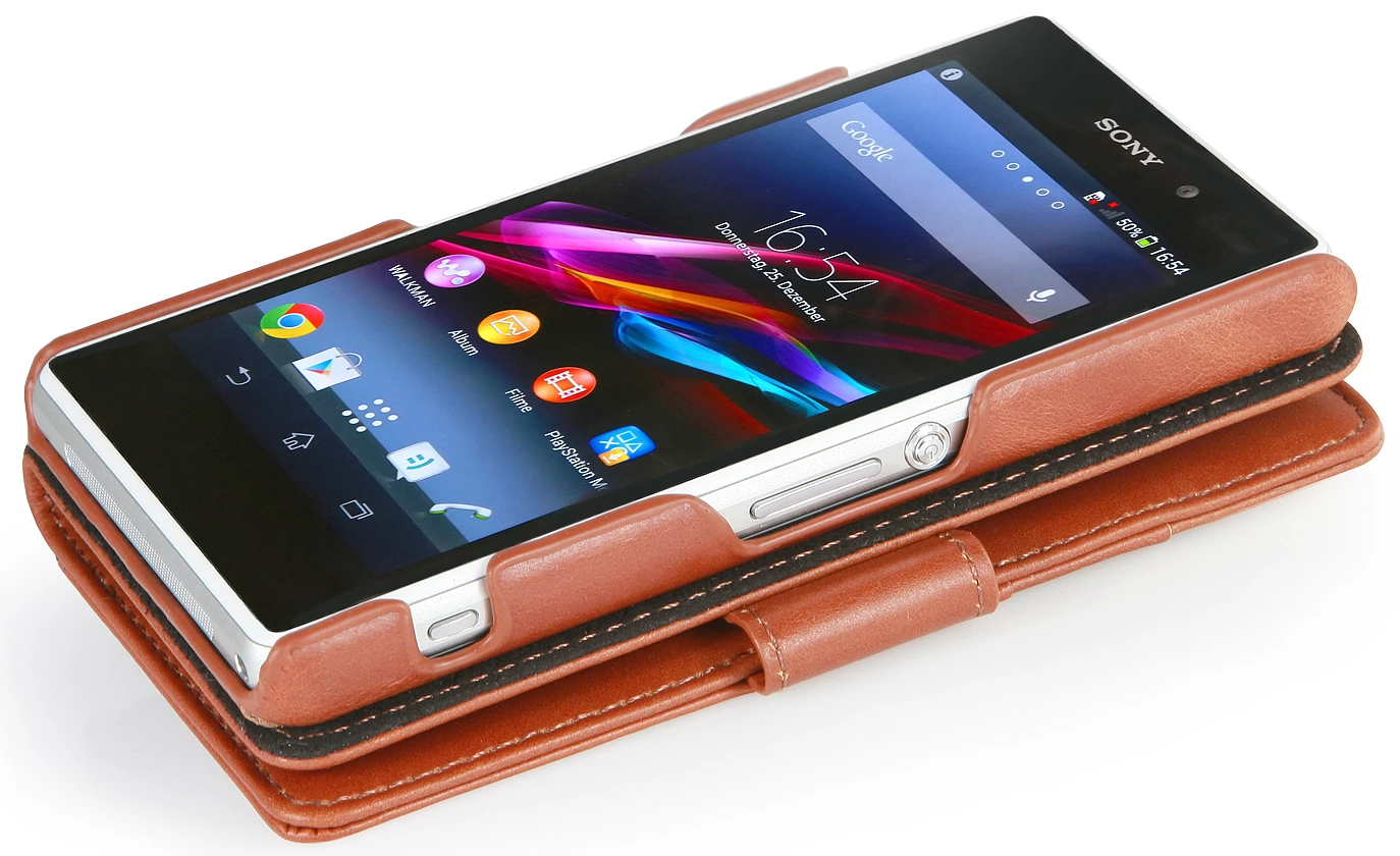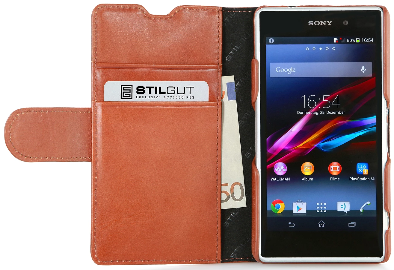 Tasche für das Sony Xperia Z1 Compactaus echtem Leder zum Schutz und zur Verwendung als Brieftasche