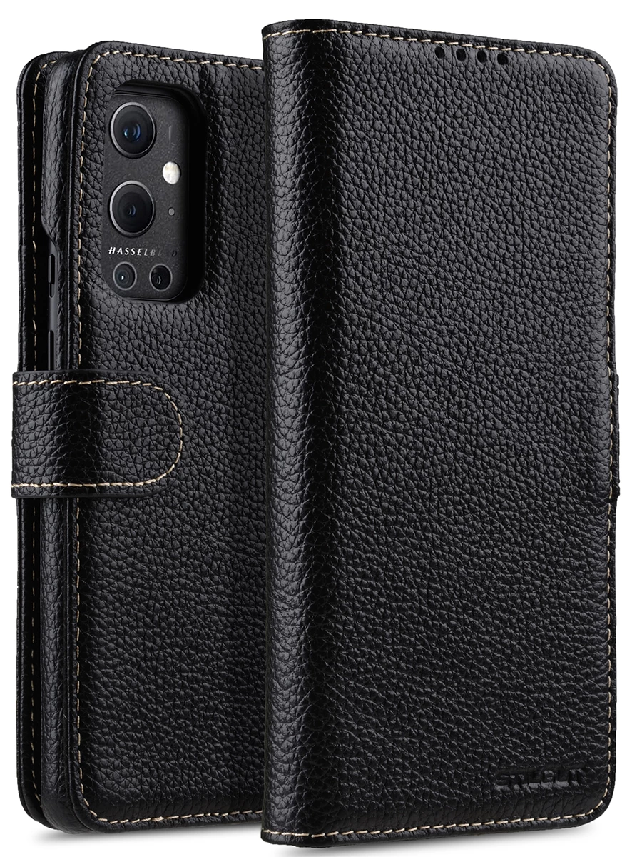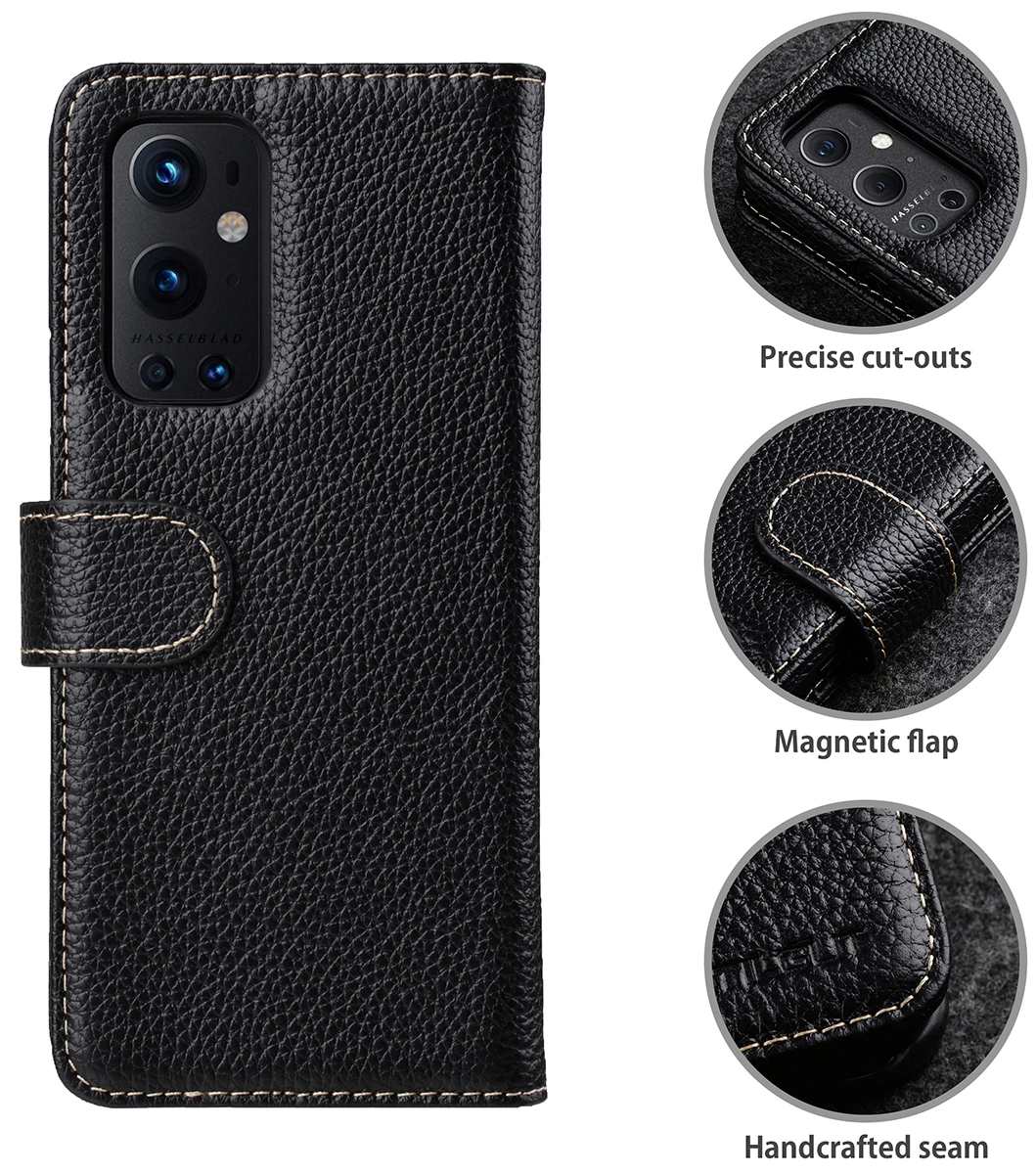 Handgemachtes OnePlus 9 Pro Flip Cover aus Leder mit Kartenfächern & Verschluss