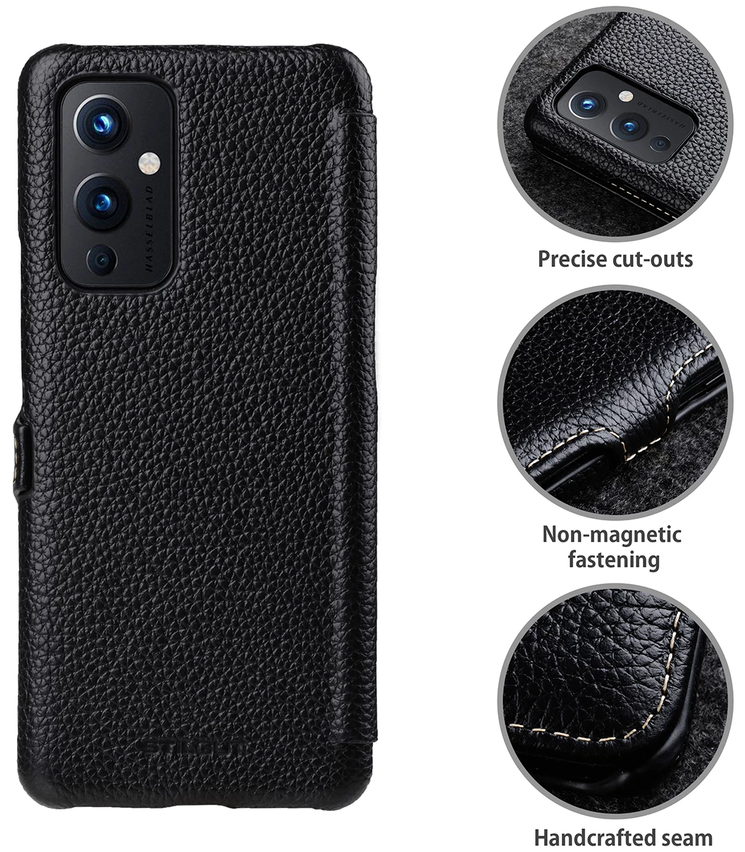 Handgefertigte OnePlus 9 Tasche Book Type aus hochwertigem Leder mit Verschluss