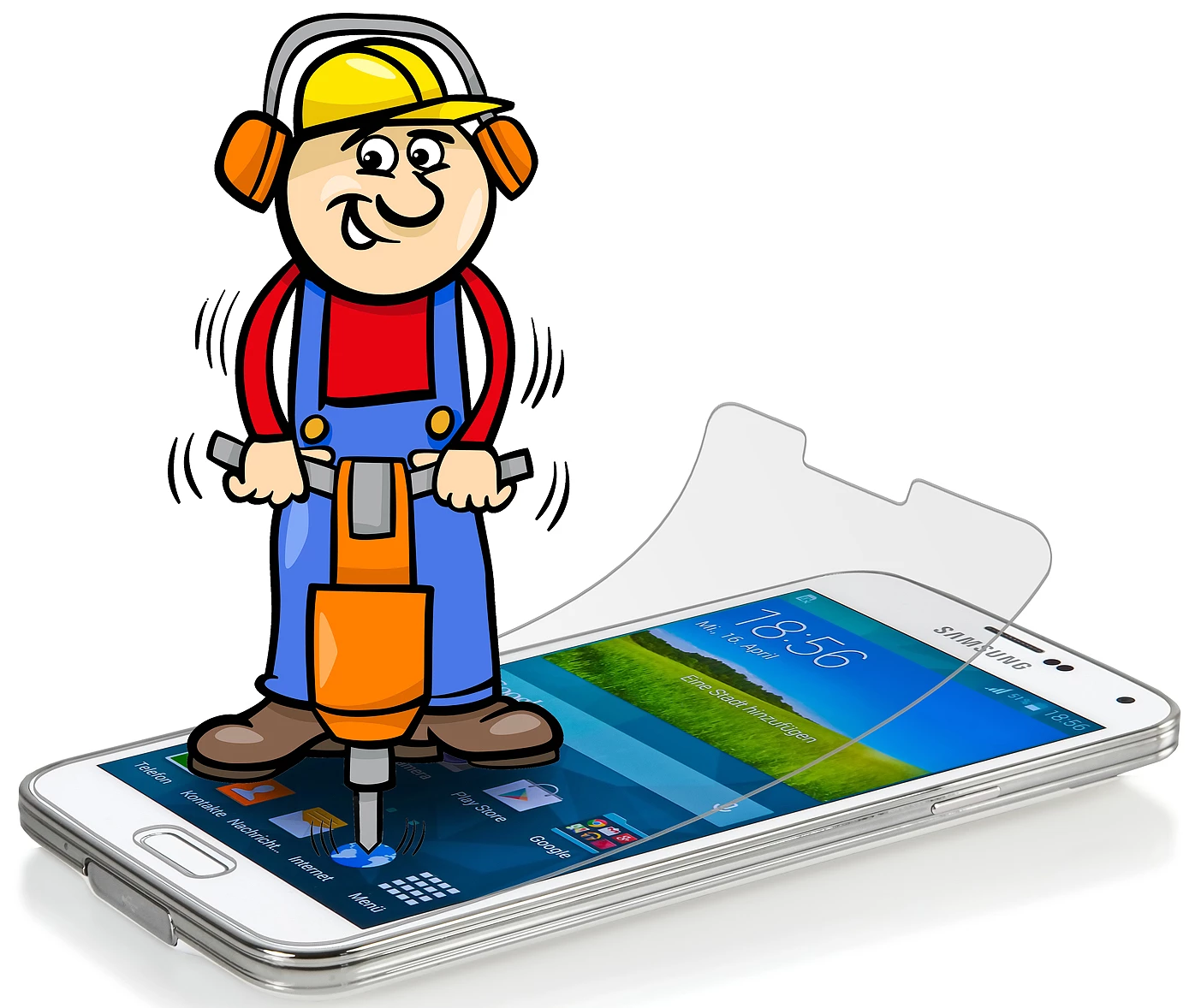 Die RĂĽckseite, die unmittelbar am Display angebracht wird, besteht aus stark haftendem Silikon