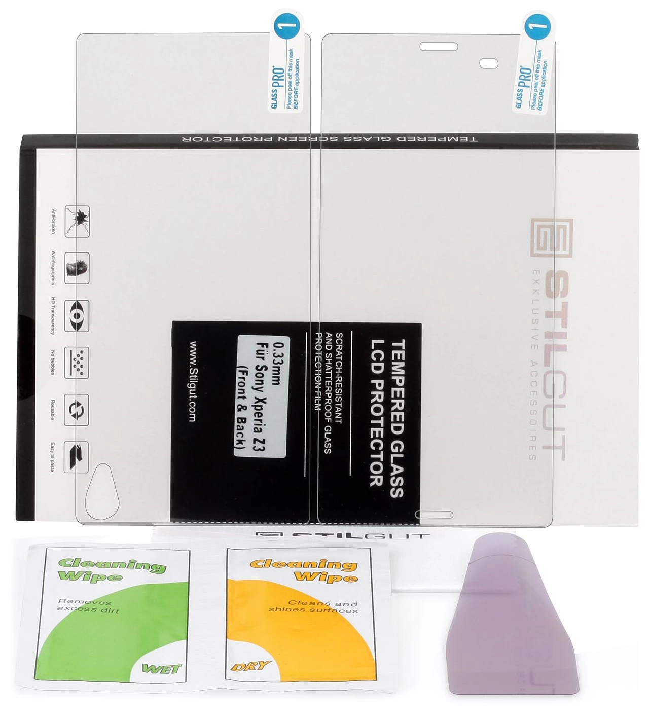 ACHTUNG: Die Lieferung beinhaltet zwei Schutzfolien. Die Schutzfolien für die Vorder- und Rückseite des Smartphones können nicht in Kombination mit StilGut Taschen verwendet werden