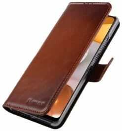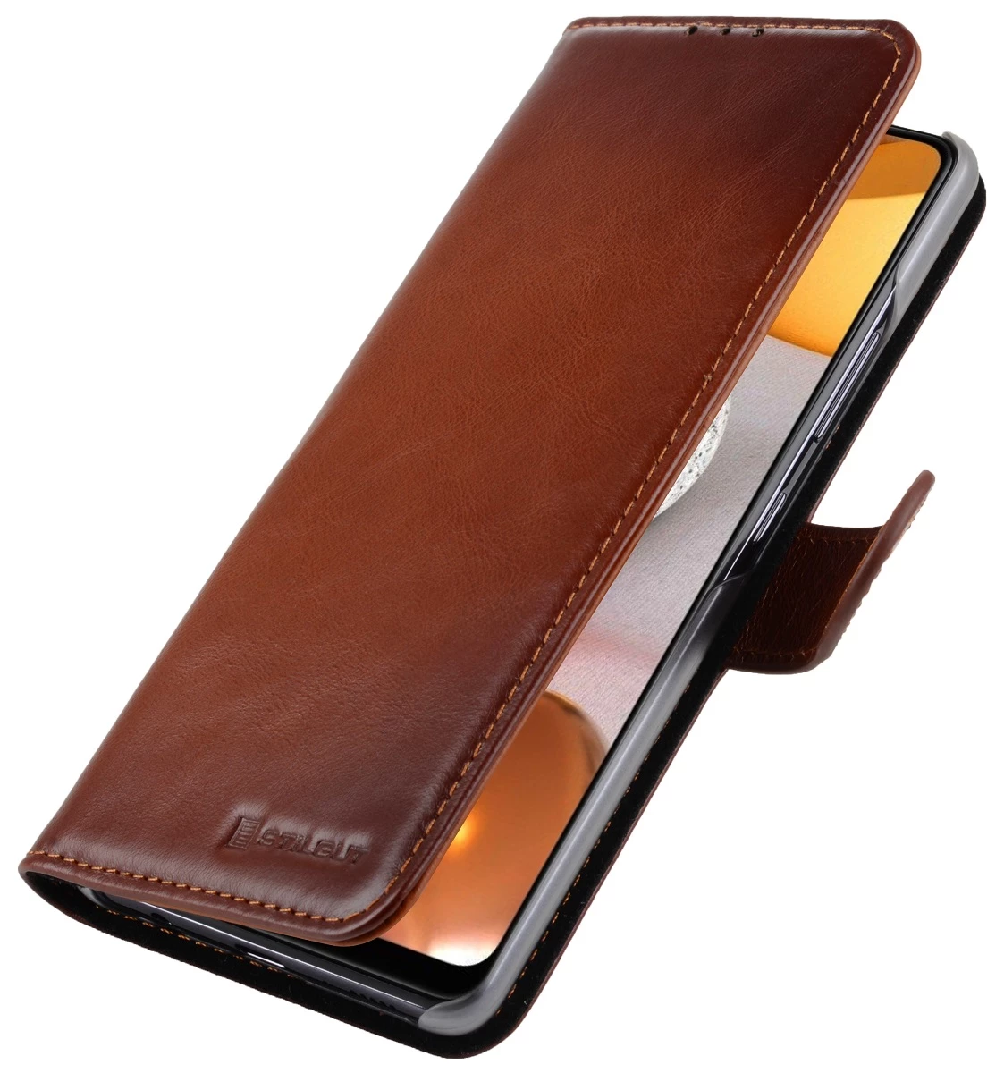 Handgemachtes Samsung Galaxy A42 5G Flip Cover aus Leder mit Kartenfächern, Standfunktion & Verschluss