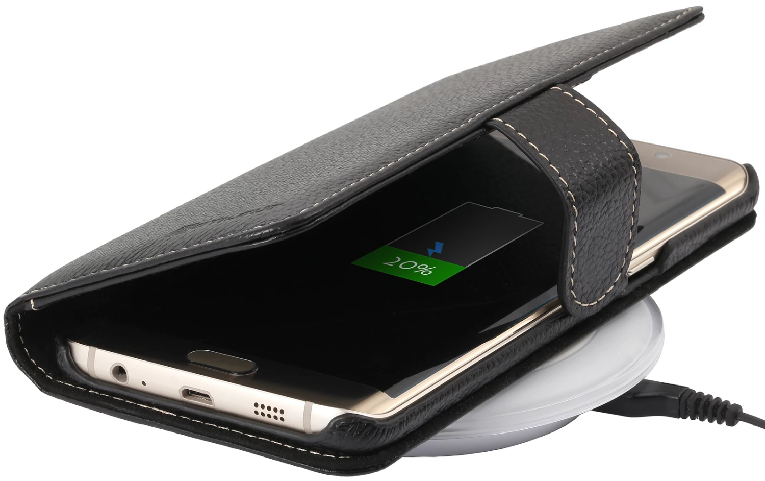 Laden in der Hülle möglich: Induktiv oder über den Ausschnitt für das Ladekabel auf der Unterseite