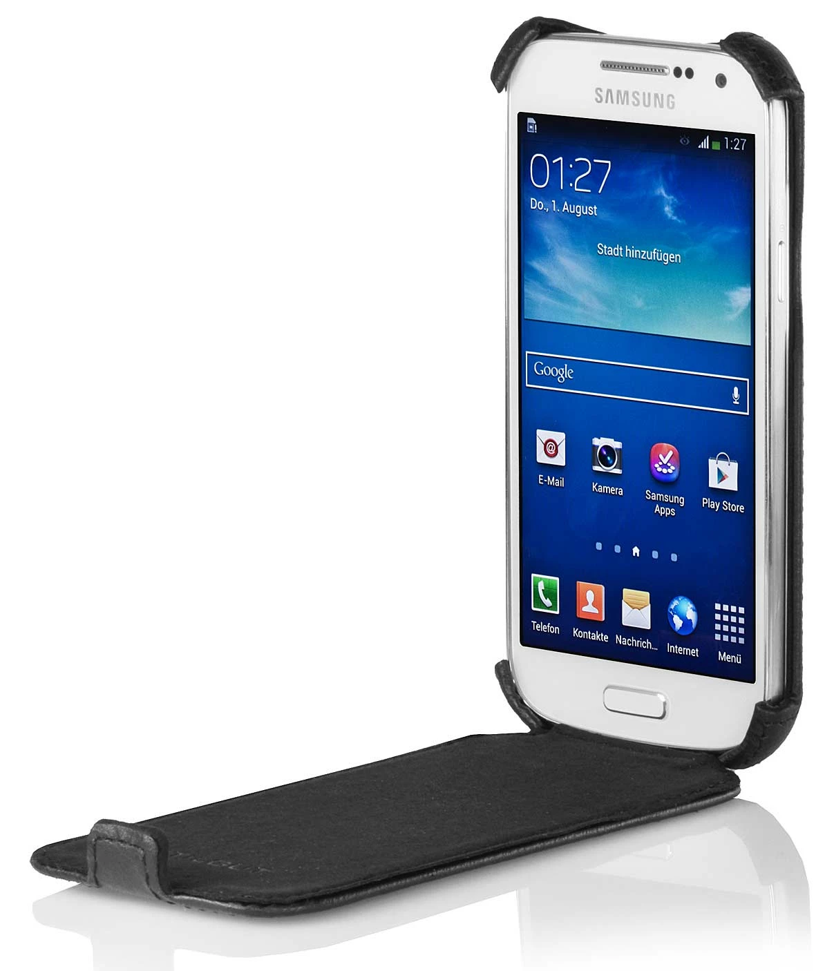 Hochwertig verarbeitete Tasche aus Kunstleder, in Handarbeit gefertigt für das Samsung Galaxy S4 Mini (i9195)