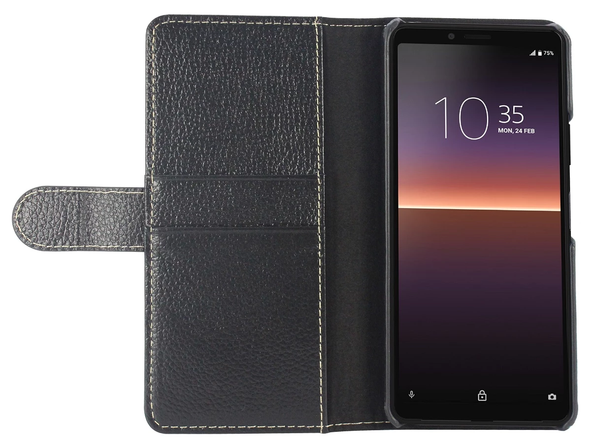 Handgemachtes Sony Xperia 10 II Flip Cover Talis aus Leder mit Kartenfächern & Verschluss