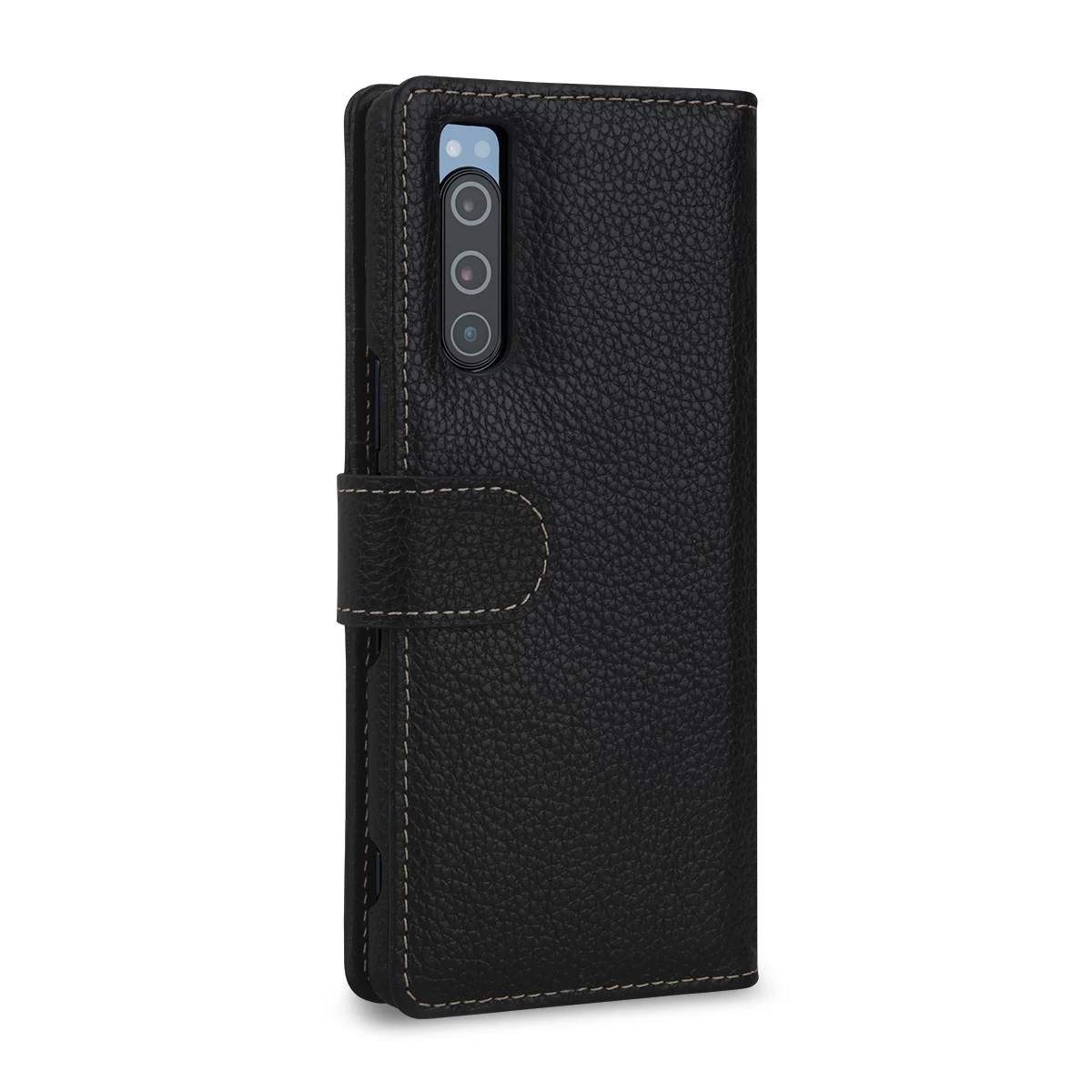 Handgefertigtes Sony Xperia 5 Flip Cover Talis aus Leder mit Kartenfächern & Verschluss