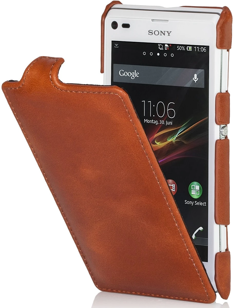 Hochwertig verarbeitete Tasche aus echtem Leder, in Handarbeit gefertigt für Sony Xperia L